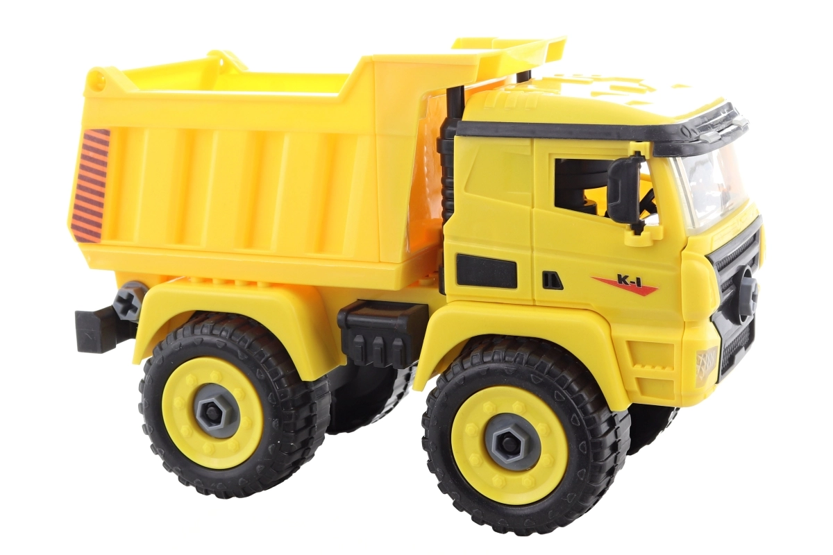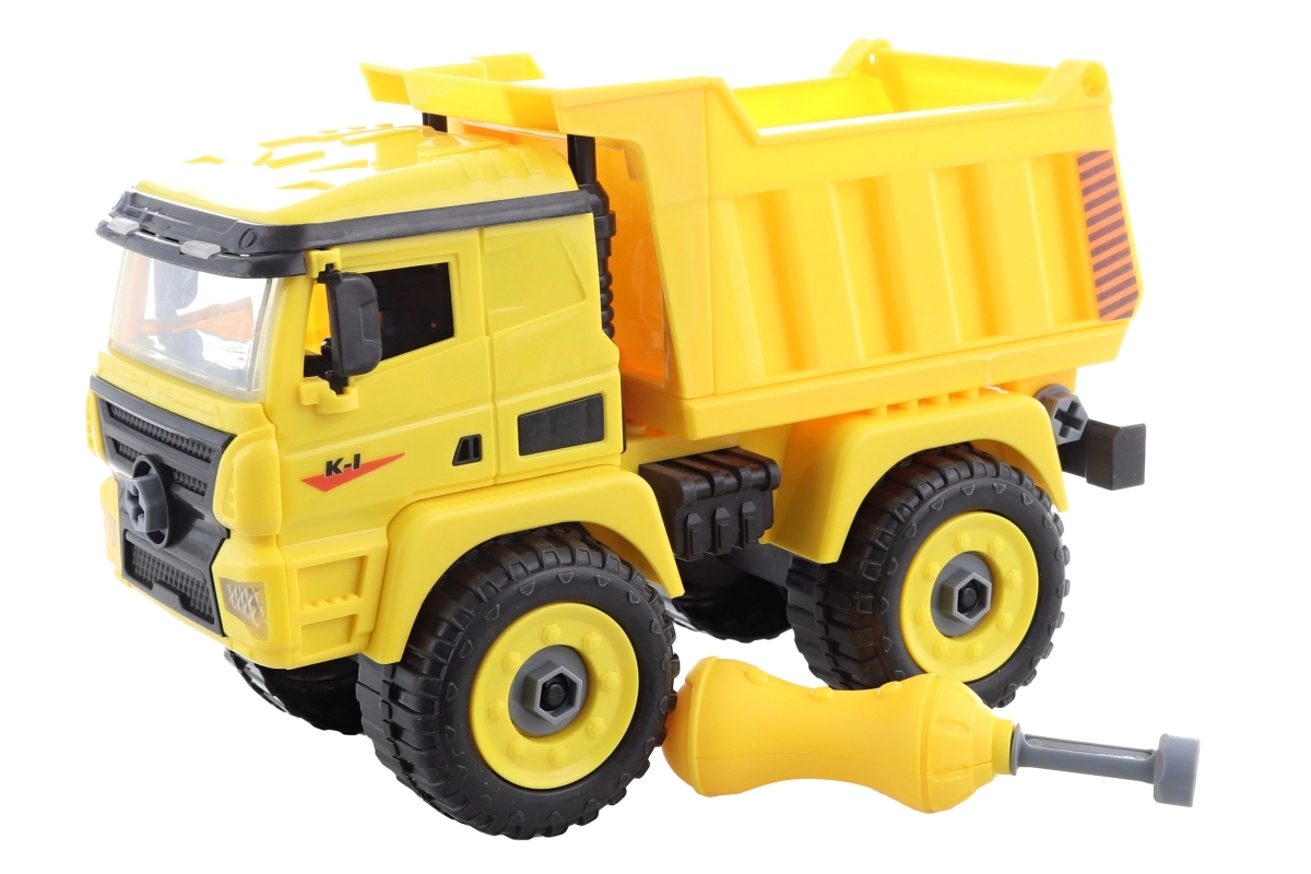Această basculantă cu șuruburi oferă copiilor distracție grozavă și, în același timp, susține abilitățile practice. Cu ajutorul șurubelniței din plastic incluse, copiii pot demonta și reasambla piesele, exersând coordonarea mână–ochi și învățând principiile de bază ale construcției. Jucăria este fabricată din plastic rezistent și, datorită marginilor rotunjite, este potrivită pentru cei mici.