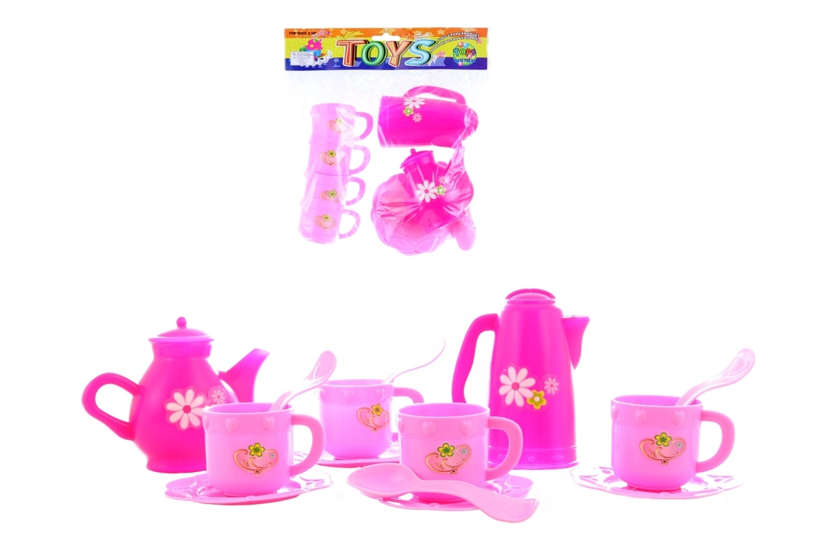 Drăguțul set de ceai roz este ideal pentru petrecerile de ceai ale copiilor și jocurile de rol ca gazdă. Conține tot ce este necesar pentru servire – 4 cești, 4 farfurioare, 4 lingurițe și 2 ceainice. Fabricat din plastic ușor, potrivit pentru copii de la 3 ani.