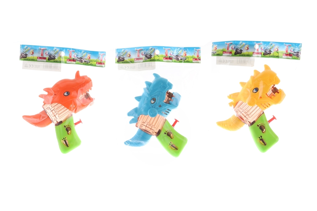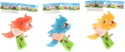 Pistolă cu apă din plastic, amuzantă, în formă de dinozaur, care aduce copiilor multă distracție de vară. Datorită dimensiunii compacte de 15 cm, se ține confortabil în mâna mică și este ușor de folosit. Ideală pentru jocuri în grădină, pe plajă sau la piscină. Construcție ușoară și sigură, umplere ușoară cu apă și design de dinozaur care va încânta orice mic aventurier.