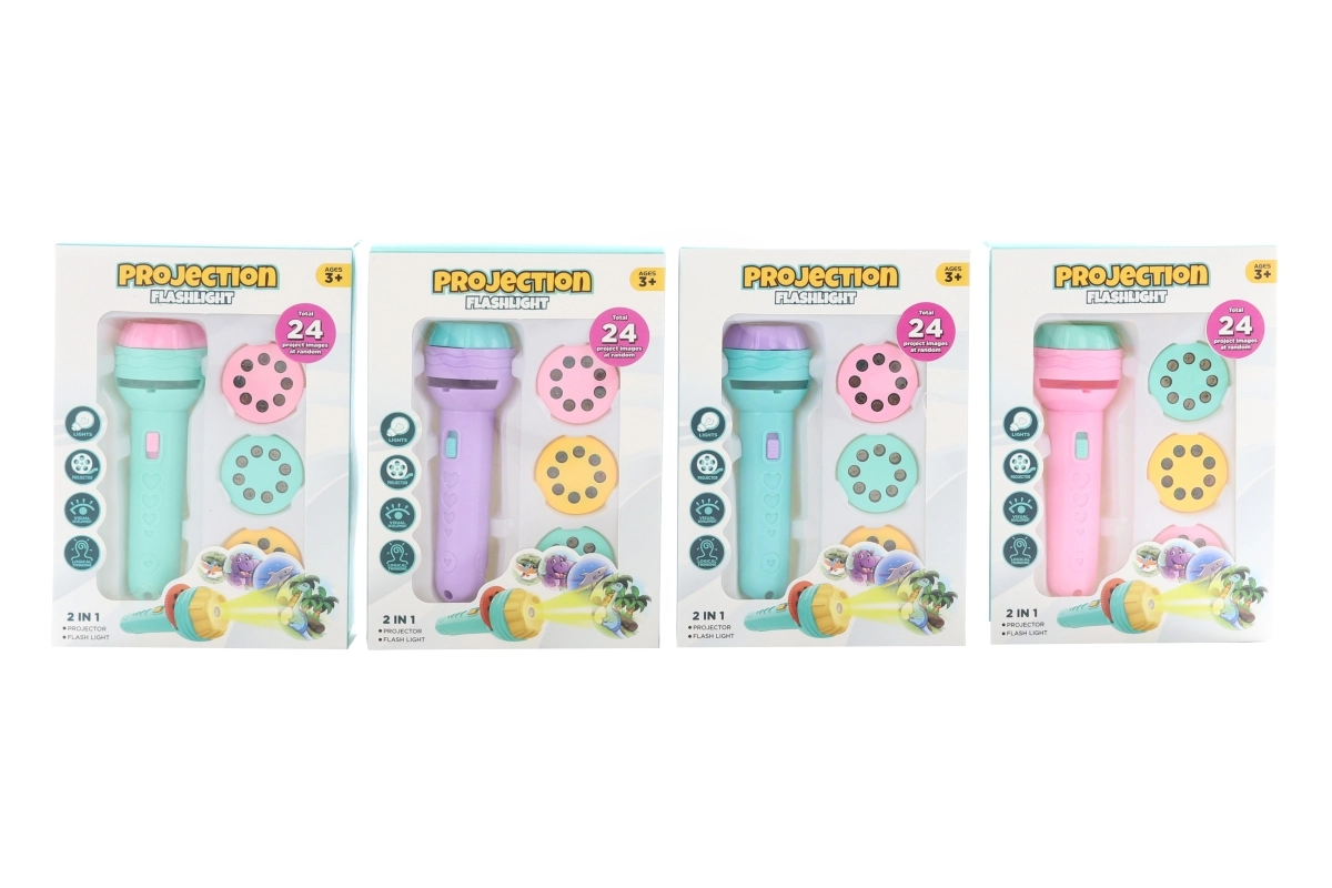 Descoperă magia proiecției cu acest proiector/lanternă 2‑în‑1 pentru copii, care oferă până la 24 de imagini drăgălașe cu animale. Proiectorul din plastic, compact și ușor, este ideal pentru camerele copiilor, povești de seară și distracție în călătorii. Potrivit pentru copii de la 3 ani.