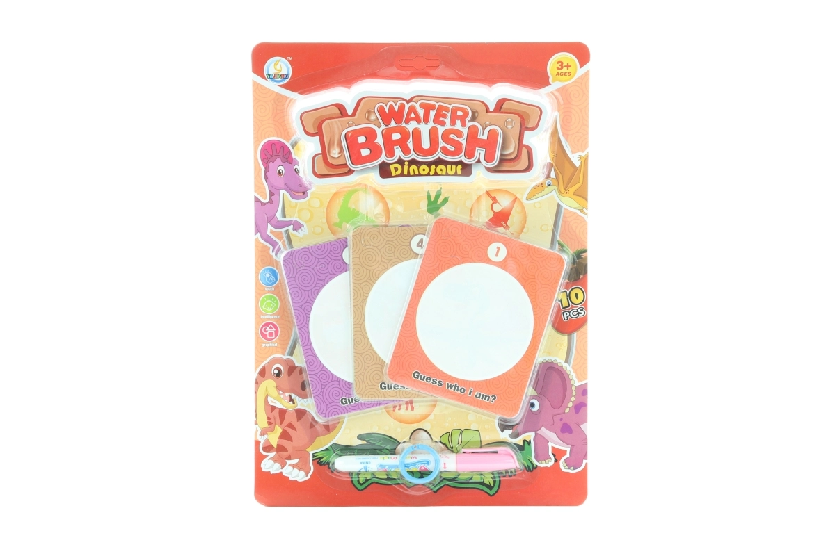 Acest set distractiv și educativ le aduce copiilor lumea dinozaurilor fără a avea nevoie de vopsele sau dezordine. În pachet găsești 10 carduri cu imagini care prind culoare atunci când sunt umezite cu apă. După uscare, culorile dispar și cardurile pot fi folosite din nou și din nou.