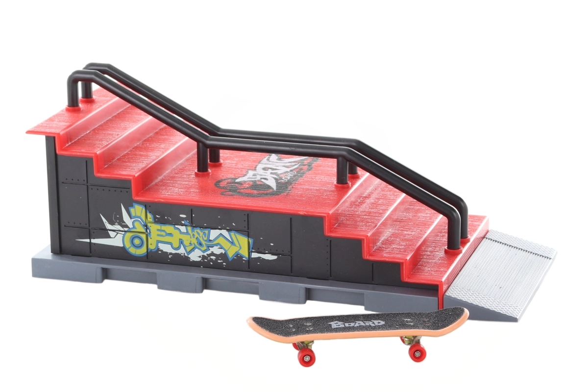 Această rampă compactă cu scări este un accesoriu grozav pentru toți micii fani ai skateboardingului. Include un mini skateboard cu șurub, pe care copiii îl pot asambla ușor și testa diverse trucuri și sărituri. Construcția durabilă din plastic este ușoară, dar stabilă pentru joacă sigură atât în interior, cât și în exterior.