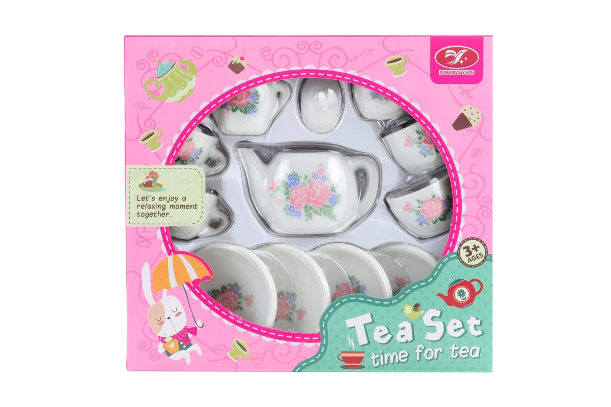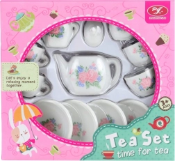 Un set adorabil de ceai din porțelan cu trandafirași va încânta toate micile gazde. Setul include 4 ceșcuțe cu farfurioare, un ceainic și un recipient pentru zahăr, ideal pentru joaca de-a ceaiul. Ambalajul compact și execuția de calitate din porțelan asigură un aspect elegant și o durată de viață îndelungată. Potrivit pentru copii de la 3 ani.