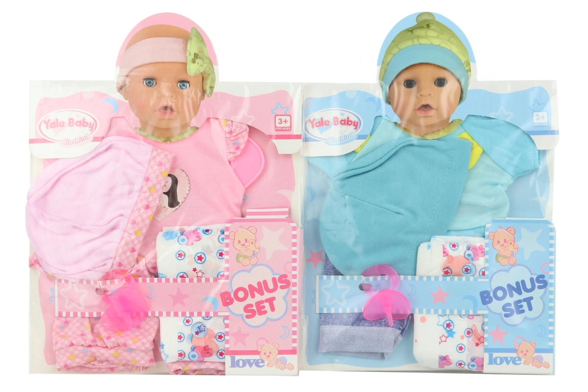 Set stilat de haine pentru o păpușă de aproximativ 40 cm, care va bucura orice mic îngrijitor. În pachet găsești nu doar ținuta, ci și un scutec și o suzetă pentru un joc și mai realist. Ideal pentru copii de la 3 ani.
