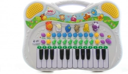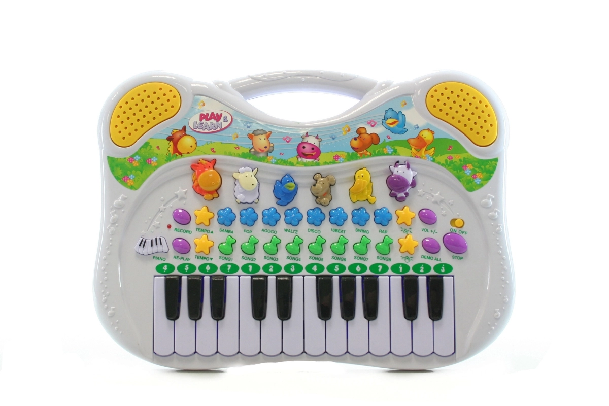 Descoperă lumea muzicii cu pianul electric pentru copii pe baterii, care îi inspiră pe micii muzicieni să creeze primele lor cântecele. Datorită varietății bogate de ritmuri, melodii și sunete, copiii se bucură de ore întregi de distracție creativă și, în același timp, își dezvoltă auzul și coordonarea.