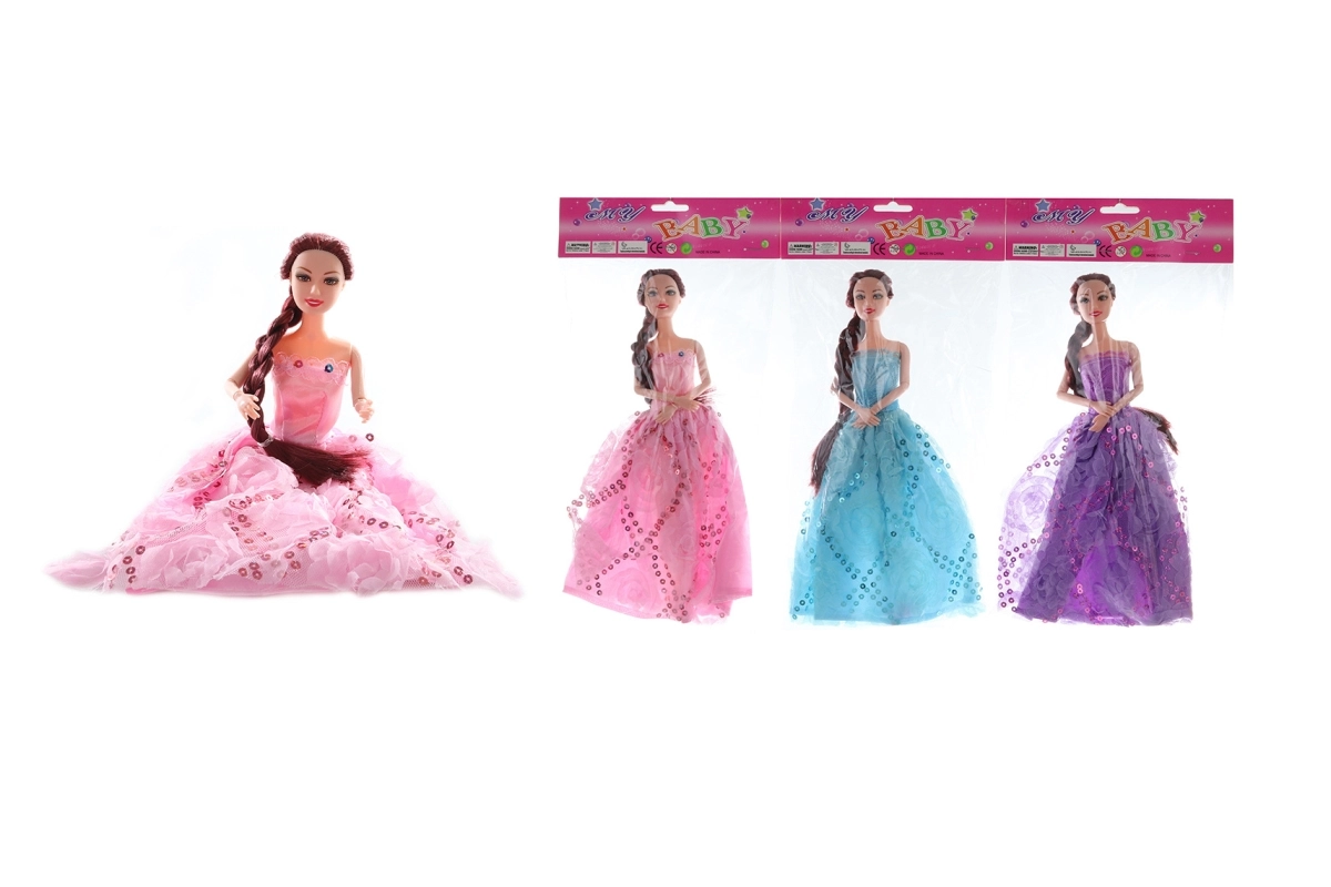 Păpușă articulată elegantă, cu înălțimea de 30 cm, în rochie frumoasă, care va încânta orice mică prințesă. Are mâini și picioare flexibile, păr lung împletit în coadă și este ideală pentru jocuri creative. Livrată într-un săculeț practic, culori în funcție de disponibilitate. Potrivită de la 3 ani.