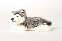Adorabilul husky de pluș în poziție culcată, cu lungimea de 23 cm, va bucura atât micii, cât și marii iubitori de animale. Este fabricat din material plăcut la atingere și este potrivit încă de la 0+. Acest animăluț de pluș eco friendly este ideal pentru alint, joacă și ca decorațiune pentru camera copilului.