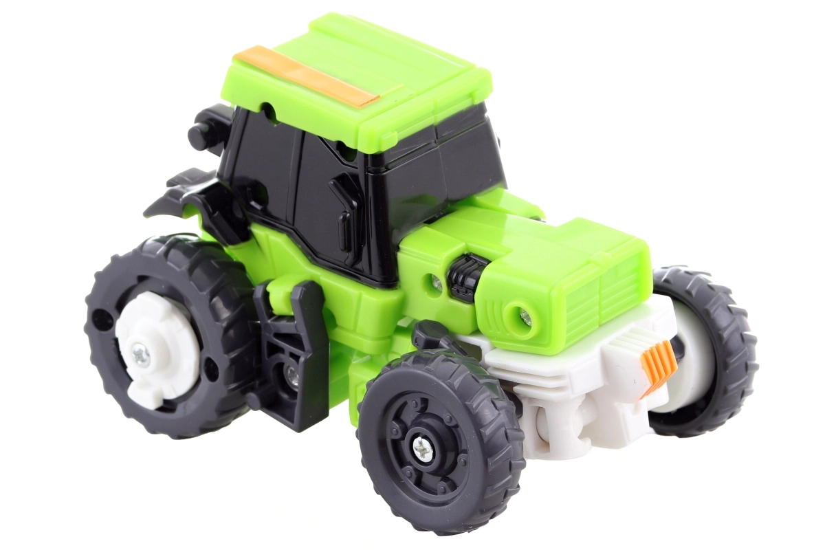 Acest robot isteț aduce copiilor aventuri pline de acțiune și lumea utilajelor agricole într-un singur produs. Transformarea ușoară a robotului în tractor susține motricitatea fină, imaginația și jocul creativ. Datorită dimensiunilor compacte, se potrivește perfect în mâna copilului și este ideal pentru drum.