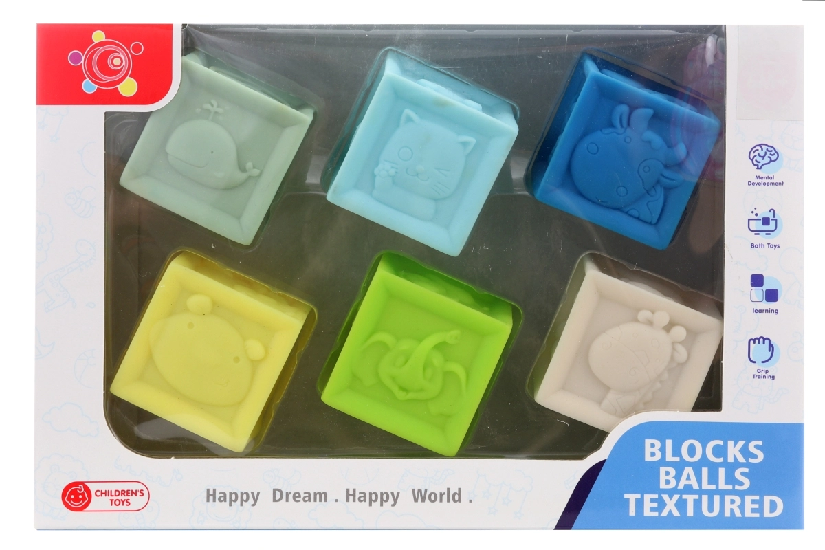 Descoperiți un set jucăuș de cuburi moi din cauciuc, concepute pentru primele explorări ale lumii. Cuburile sunt plăcute la atingere, ușoare și sigure, astfel încât se potrivesc perfect în mânuțele copiilor mici. Datorită posibilității de utilizare și în apă, copiii se vor bucura de multă distracție nu doar pe covoraș, ci și în timpul băii.
