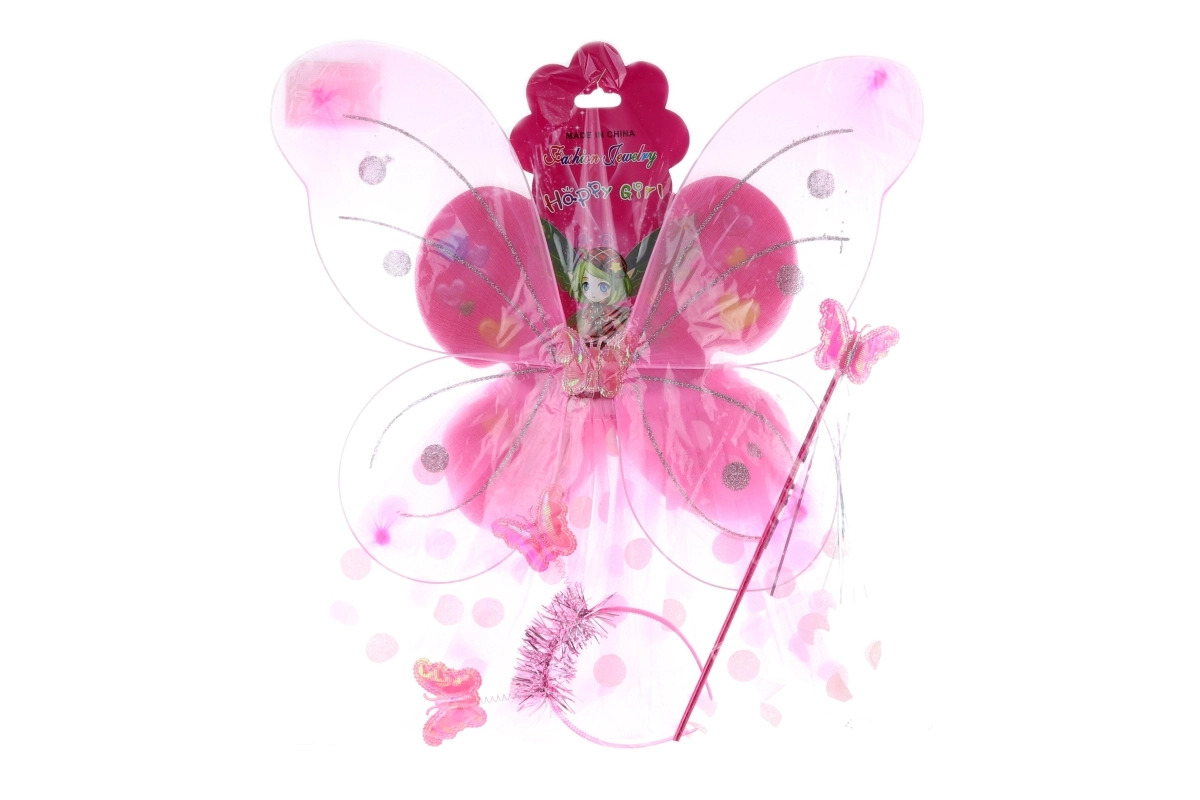 Accesoriile completează costumul – o baghetă strălucitoare pentru magie și o bentiță jucăușă cu fluturași pentru și mai multă bucurie la deghizări.