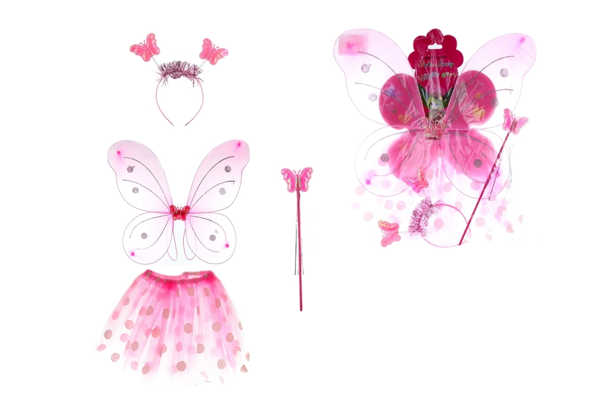 Pregătește mica zână pentru aventuri magice. Acest set pentru copii se remarcă prin aripi ușoare cu detalii sclipitoare, fustiță tutu confortabilă cu buline și accesorii asortate pentru un costum desăvârșit. Datorită bretelelor elastice și taliei elastice, se îmbracă ușor și se potrivește bine.