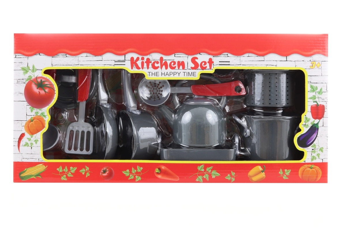 În set găsiți tot ce este necesar: ceainic pentru apă, oală cu strecurătoare, tavă de copt, tigaie, crăticioară, capac și ustensile practice, inclusiv polonic, spatulă și 2 linguri pentru paste. Ambalat într-o cutie cadou – excelent ca dar.