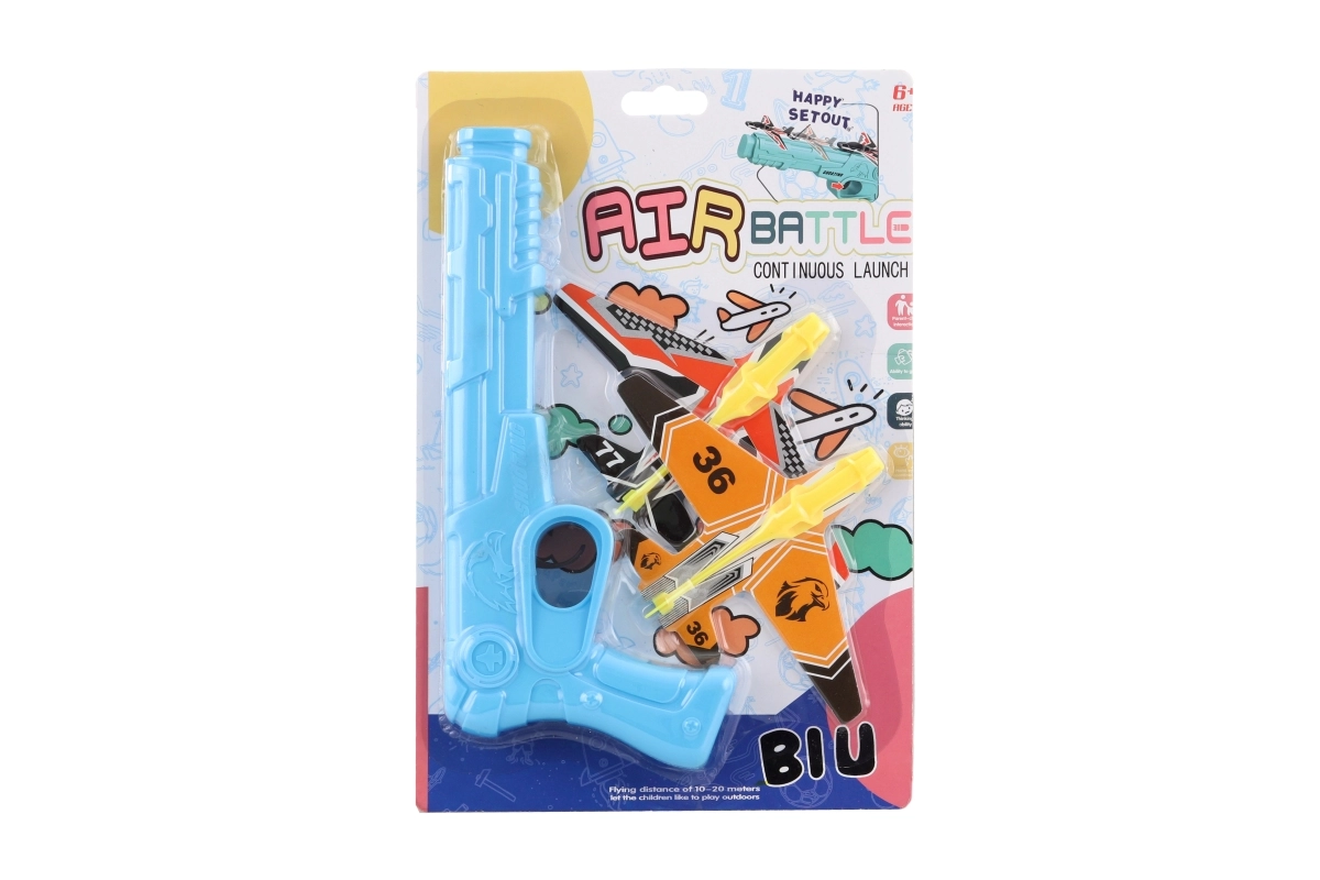 Trăiți distracția plină de acțiune cu o pistolă lansatoare care trimite în câteva clipe în aer avioane ușoare din plastic. Datorită utilizării simple, se pot bucura de joc atât copiii, cât și părinții, acasă sau afară. Setul este ideal pentru dezvoltarea coordonării, a reacțiilor rapide și a spiritului competitiv.