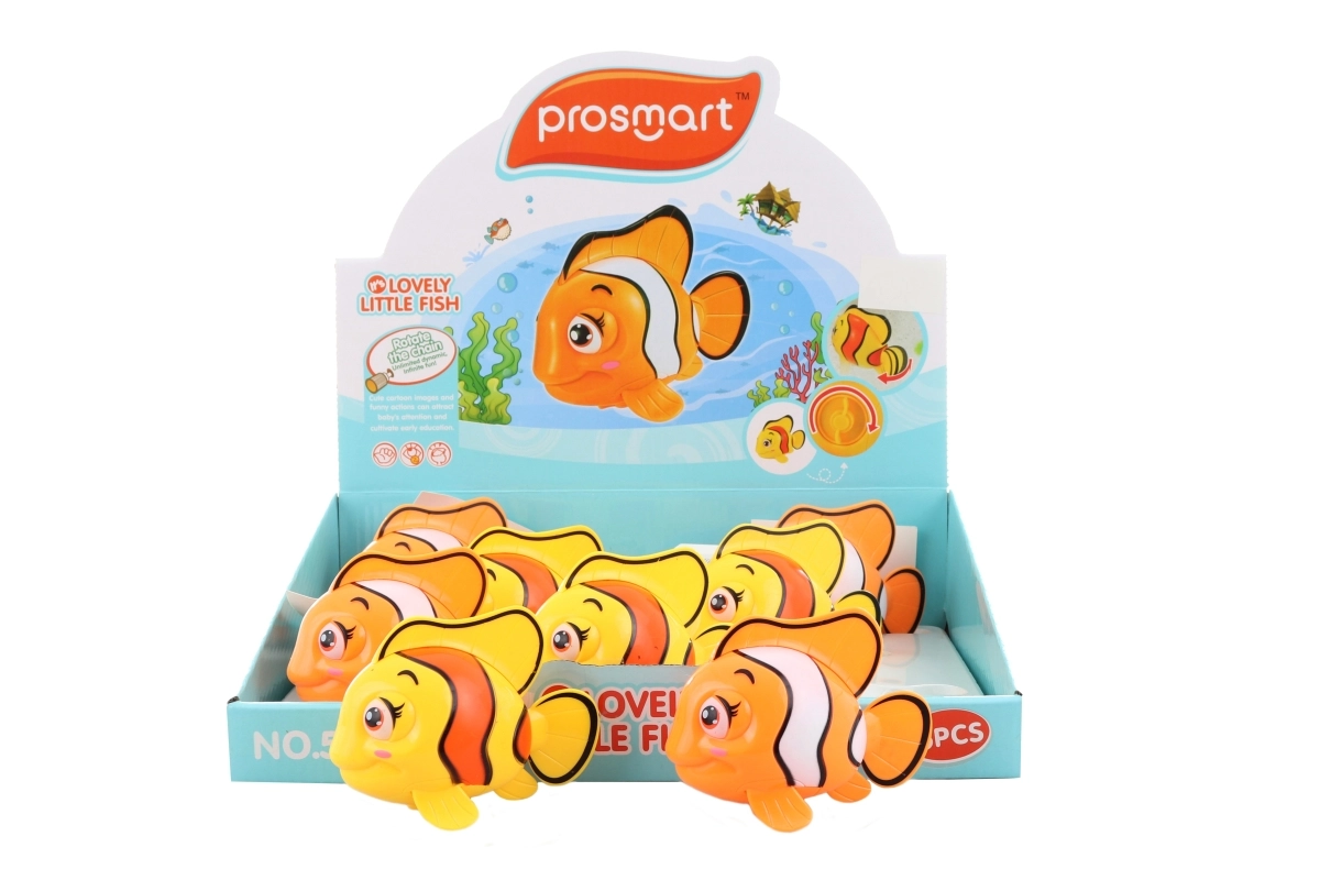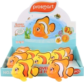 Acest peștișor drăgălaș cu mecanism de înfășurare, cu dimensiuni de aproximativ 10 × 7 × 5,5 cm, transformă baia obișnuită într-o aventură acvatică distractivă. O simplă înfășurare activează mecanismul datorită căruia peștișorul își mișcă vioi înotătoarea din spate și plutește la suprafață. Jucăria este realizată din plastic rezistent și este concepută pentru mâinile mici ale copiilor.