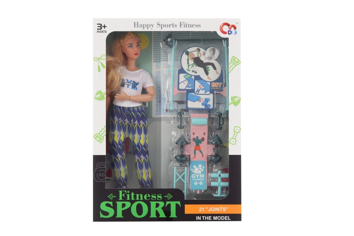 Descoperă distracția și mișcarea cu această păpușă articulată și setul bogat de accesorii fitness. Păpușa are cap, brațe și picioare flexibile, astfel că poate adopta multe poziții realiste în timpul exercițiilor. Pachetul include o bancă de antrenament și 5 gantere de mărimi diferite. Joc creativ ideal pentru copii de la 3 ani.