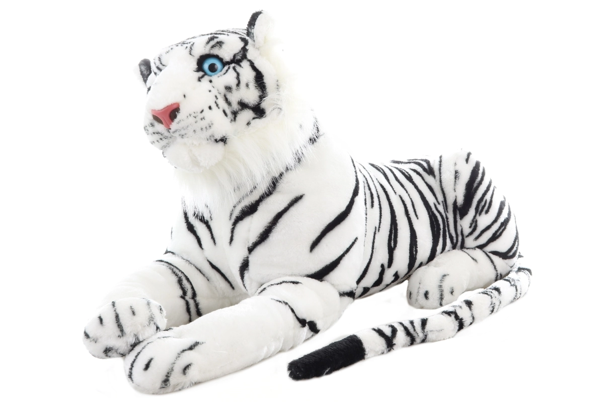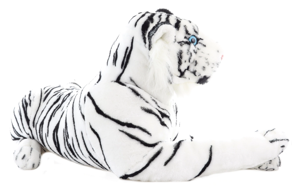 Un tigru alb de pluș drăgălaș și realizat realist, cu lungimea de 70 cm, îi va încânta pe micii și marii iubitori de animale. Material extra moale, ochi albaștri expresivi și dungare detaliate îl fac jucăria ideală pentru îmbrățișat, decor și joacă creativă. Potrivit deja de la 0+ .