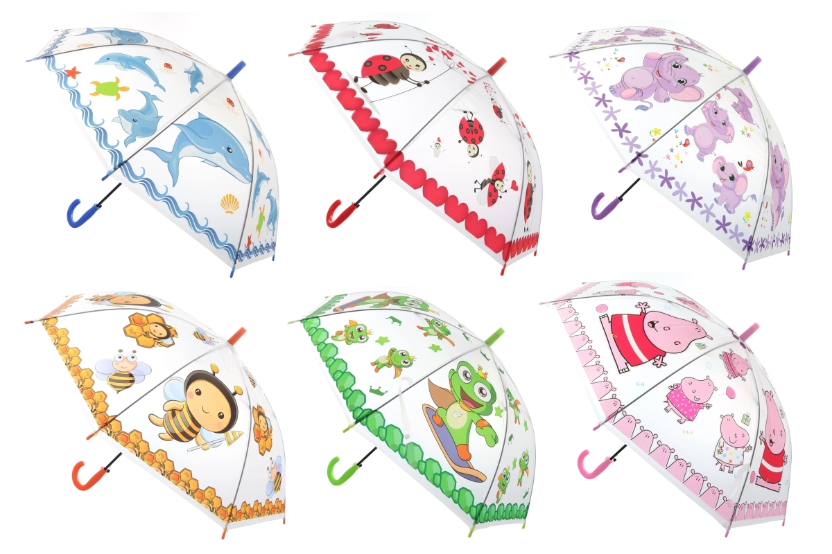 Umbrela transparentă stilată cu animăluțe este ideală pentru zilele ploioase. Datorită mecanismului automat, o deschizi printr-o singură apăsare, iar suprafața transparentă asigură o vizibilitate bună chiar și pe ploaie deasă. Motivele vesele vor încânta în special copiii și vor face mai plăcut drumul la școală sau în excursii.