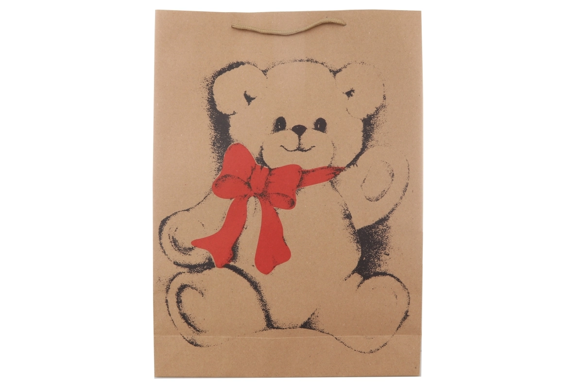 O pungă cadou cu motiv de urs stilată, în format mare, ideală pentru oferirea elegantă a cadourilor. Datorită execuției mai rezistente și dimensiunilor practice 31 × 42 × 9,5 cm, este potrivită pentru cărți, jucării și pachete mai voluminoase. O soluție decorativă grozavă pentru orice ocazie.