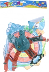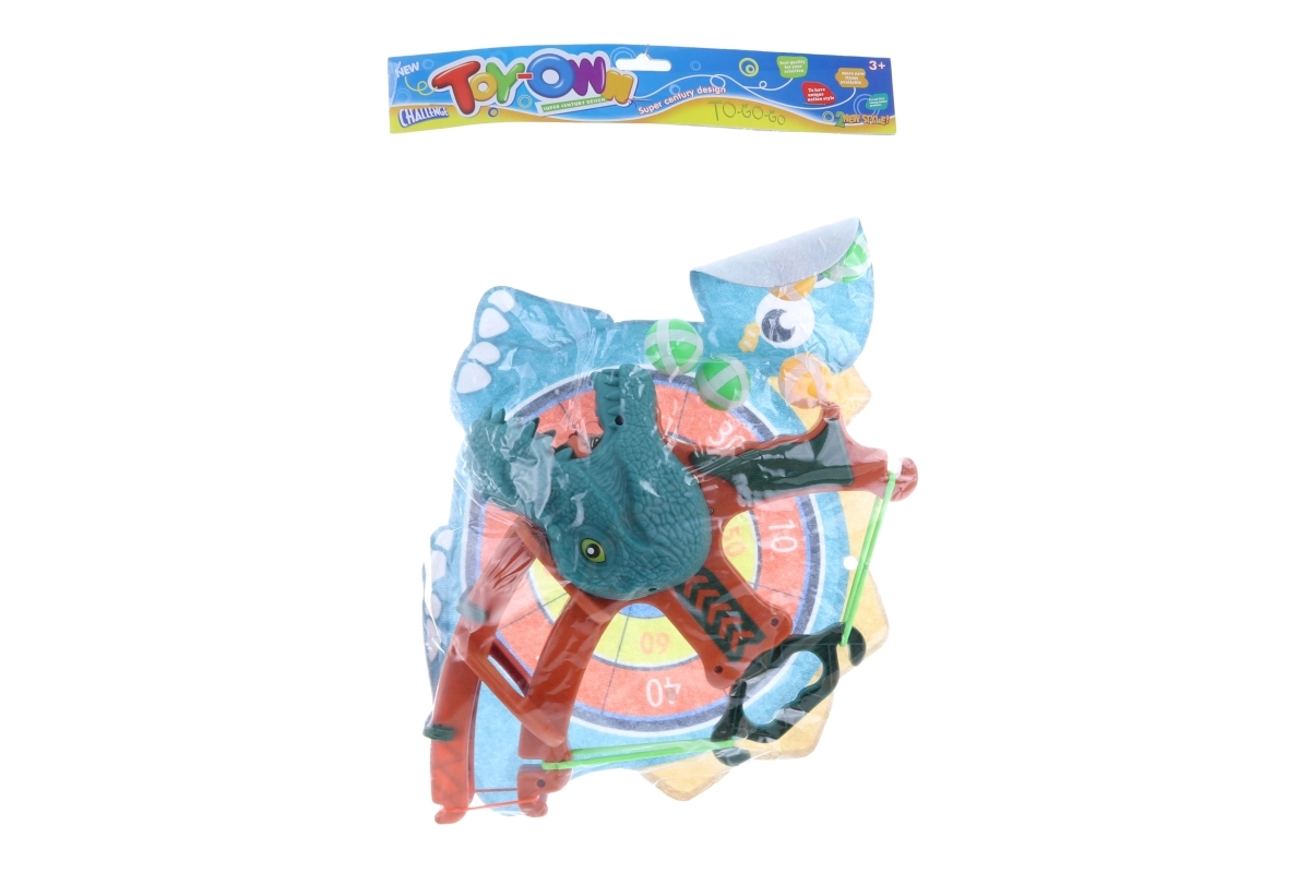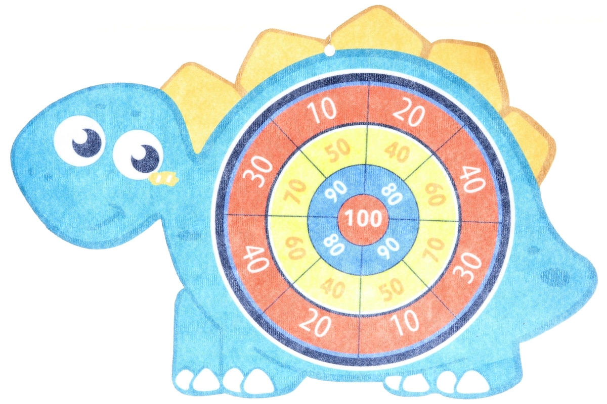 Set distractiv pentru micii trăgători: țintă cu motiv dinozaur și arbaletă pentru copii cu scai pentru joacă în siguranță. Pachetul conține țintă, 5 mingi, arbaletă și cârlig pentru agățare. Ideal pentru dezvoltarea îndemânării și concentrării la copiii de la 3 ani în sus.