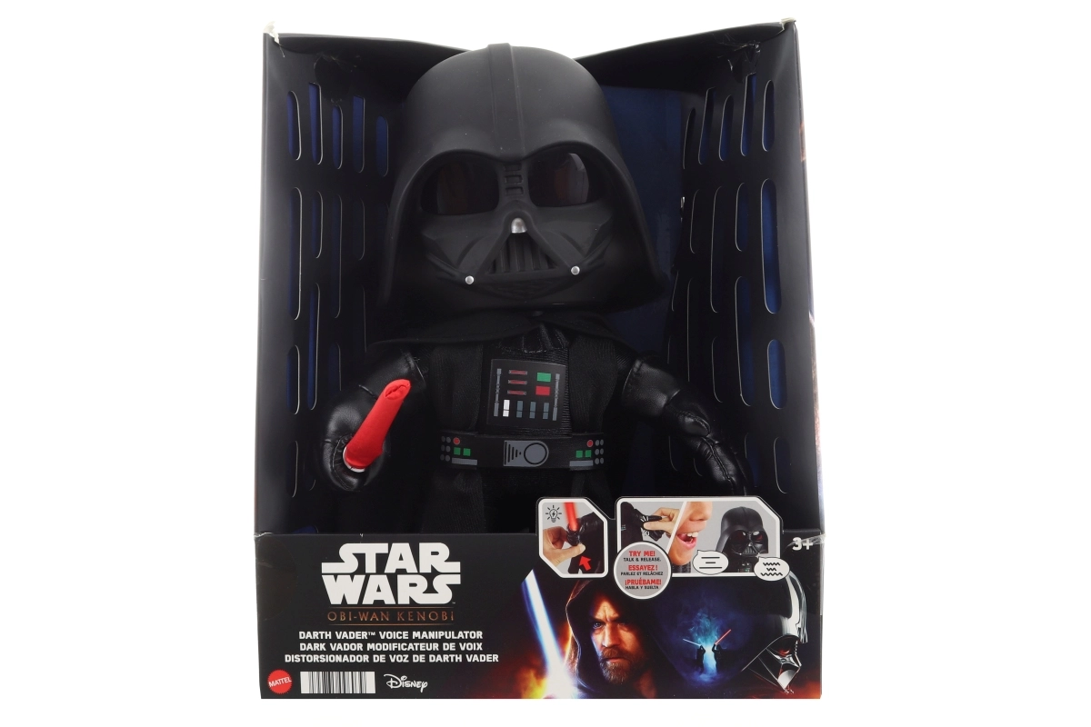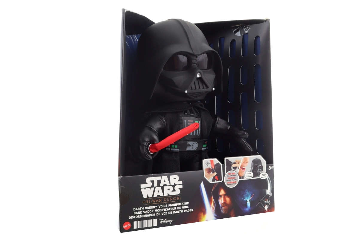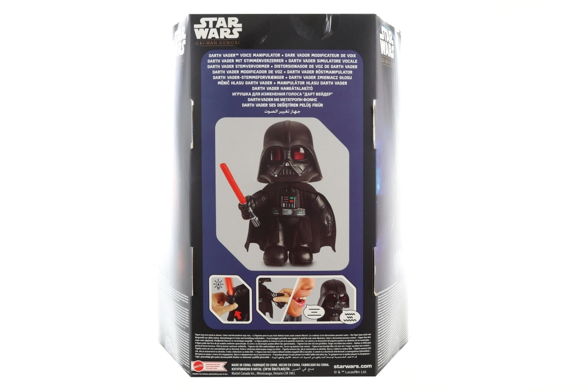 Îndrăgitul personaj negativ dintr-o galaxie îndepărtată sosește sub forma unui pluș de calitate, potrivit atât pentru joacă, cât și pentru colecție. Figurina Darth Vader este echipată cu o sabie luminoasă și un schimbător de voce, astfel încât imaginația copiilor să prindă aripi. Controlul este simplu – funcțiile se activează prin apăsarea mâinii.