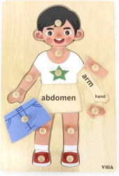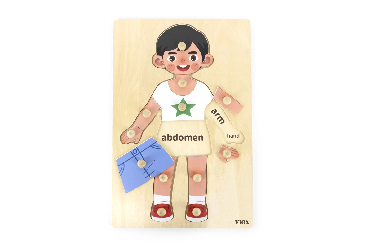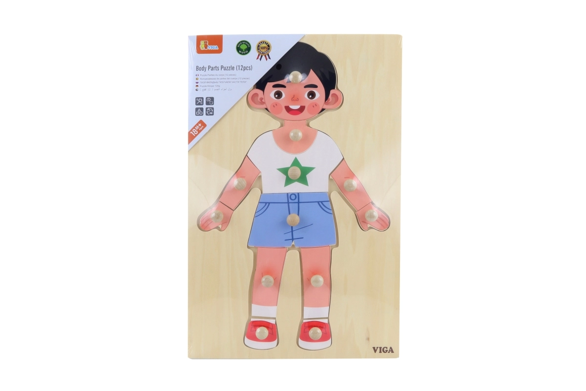 Acest puzzle din lemn de înaltă calitate, cu motivul unui băiat, este o alegere excelentă pentru dezvoltarea îndemânării copiilor. Datorită celor 12 piese rezistente, copiii își exersează coordonarea mână–ochi și, în același timp, învață să recunoască diferitele părți ale corpului. Potrivit pentru joaca acasă și pentru grădinițe.