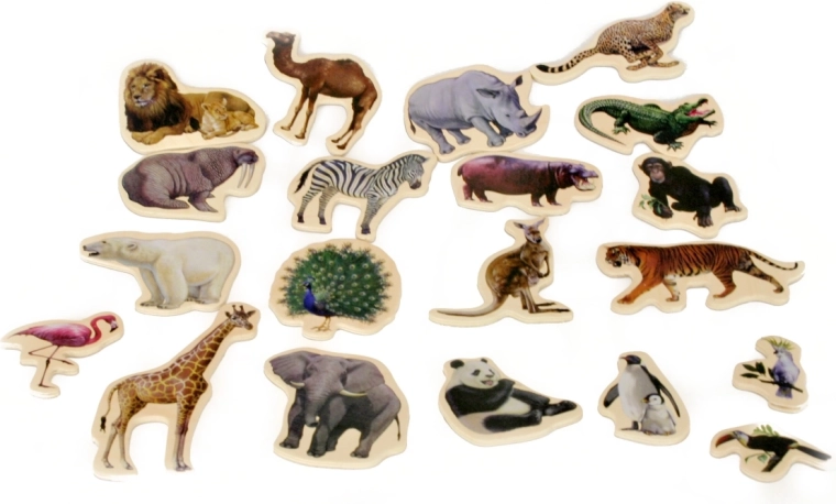 Figurine din lemn stabile și rezistente, cu imprimeu realist, rezistă utilizării zilnice și sunt plăcute în mâna copilului.