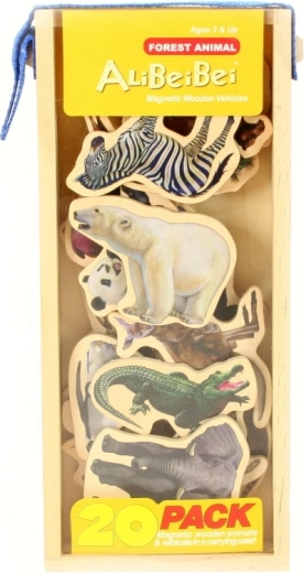 Setul este păstrat într-o cutie solidă din lemn, cu capac transparent și mâner practic pentru transport facil. Ideal pentru joacă acasă, la grădiniță sau în călătorii. Copiii își exersează recunoașterea animalelor, vocabularul, sortarea și coordonarea mână–ochi.