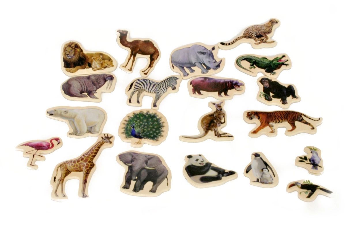 Fiecare piesă are spate magnetic pentru fixare ușoară pe tablă sau frigider. Excelent pentru recunoașterea animalelor, compunerea de povești și mesaje de dimineață.