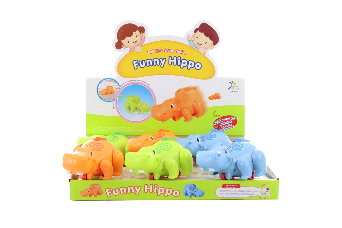 Un hipopotam bebeluș adorabil din plastic, de aproximativ 15 × 6 × 10 cm, va încânta orice mic iubitor de animale. Nu este cu mecanism de întoarcere, dar în timpul mersului își mișcă membrele, ceea ce îl face o jucărie distractivă și sigură pentru copii de la 3 ani.