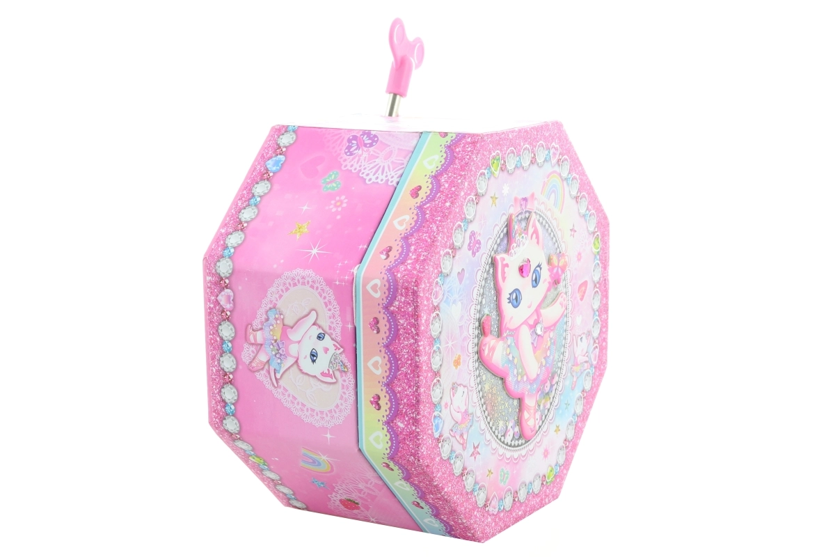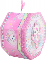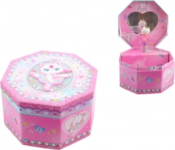 Cutie de bijuterii roz fermecătoare, cu mecanism muzical și balerină rotativă, care va încânta orice mică domnișoară. După întoarcerea cheiței, figurina începe să se rotească, iar cutia cântă o melodie, în timp ce în interior găsiți compartimente practice și o oglinjoară în formă de inimă. Ideală pentru depozitarea bijuteriilor și comorilor mărunte, cu motive drăgălașe cu pisici și unicorni și un finisaj sclipitor pentru un aspect fermecător, muzică delicată și păstrare sigură a mărunțișurilor.