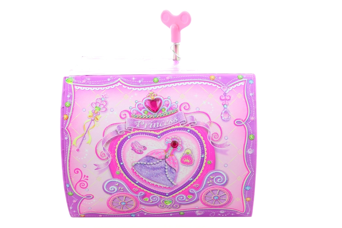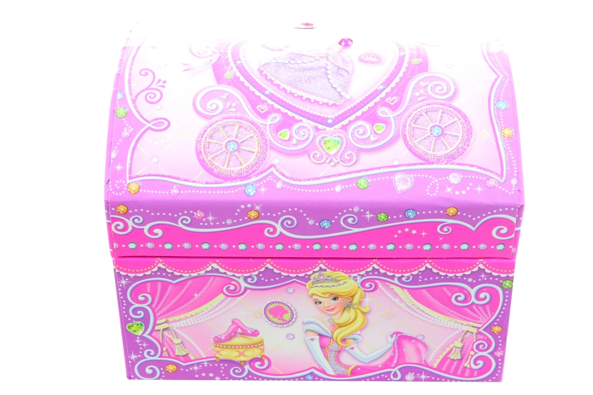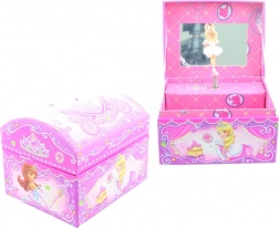 Încântătoarea cutie muzicală roz pentru bijuterii, perfectă pentru micile cochete, ascunde un oglindaș și o balerină dansatoare care, după întoarcerea cheiței, începe să danseze și pornește o melodie delicată. Ideală pentru păstrarea bijuteriilor și comorilor copiilor, cu interior sigur și un aspect fermecător de prințesă.