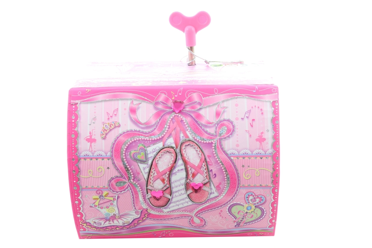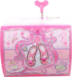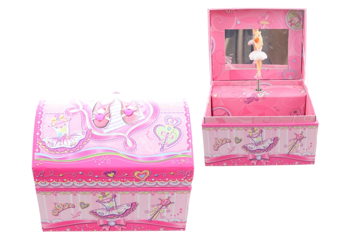 Eleganta cutie muzicală roz pentru bijuterii, cu motiv de balet, va încânta atât micile, cât și marile iubitoare ale dansului. După învârtirea cheiței, la deschiderea capacului, figurina balerinei începe să danseze în fața oglinzii și se aude o melodie delicată. Cutia oferă spațiu pentru comori mărunte și bijuterii, are închidere practică și cucerește prin designul său delicat. Mecanism muzical cu cheiță, balerină rotativă, oglindă la interior, dimensiuni compacte aprox. 13 × 10 × 10 cm.