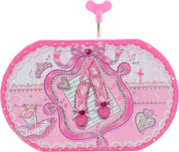 Eleganta cutie de bijuterii roz, cu mecanism muzical și balerină dansatoare, va încânta atât micile cât și marile iubitoare ale baletului. În interior găsiți un oglindaș și spațiu pentru bijuterii mici. După întoarcerea cheiței, balerina dansează grațios și se aude o melodie plăcută. Dimensiunile compacte cca 17 × 11 × 8 cm și motivul delicat de balet o fac o decorațiune frumoasă și un accesoriu practic pentru măsuța de toaletă.