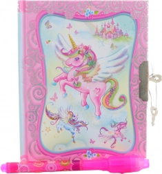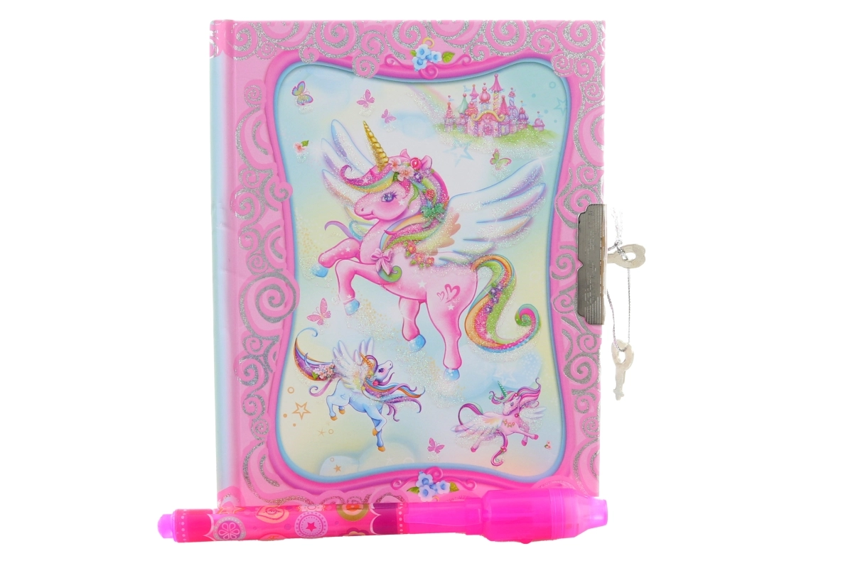 Jurnal secret fermecat pentru micile domnișoare, cu motiv unicorn. Datorită stiloului special, îți poți scrie secretele cu cerneală invizibilă și le poți citi doar sub lumina UV de la capătul stiloului. Jurnalul este protejat cu 2 chei, astfel încât notițele tale rămân în siguranță. Dimensiunile compacte aprox. 11 × 14 × 2 cm încap atât în ghiozdan, cât și în sertar.