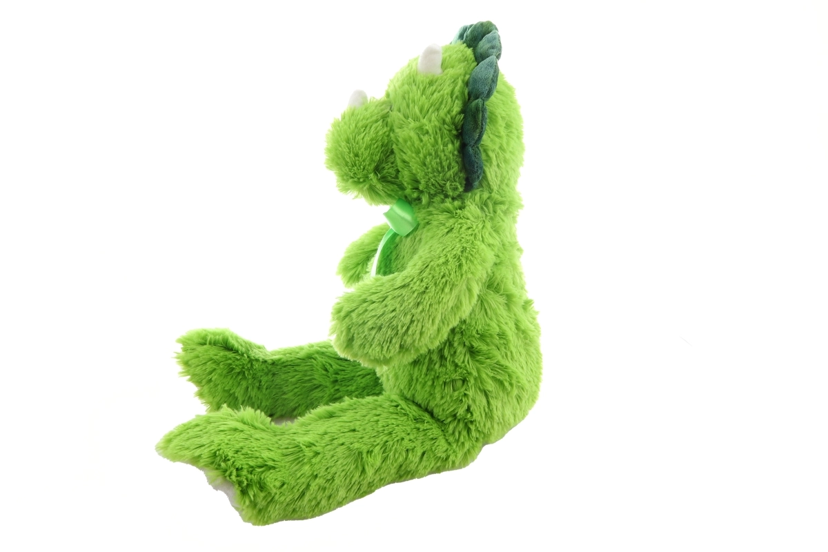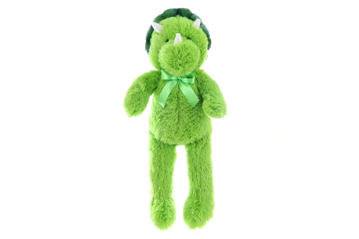 Designul cu coarne mici, „țeapă” pe spate și fundiță are un aspect prietenos și vesel, potrivindu-se în orice cameră de copil. Datorită execuției de calitate, dinozaurul este potrivit pentru îmbrățișări zilnice și utilizare îndelungată.