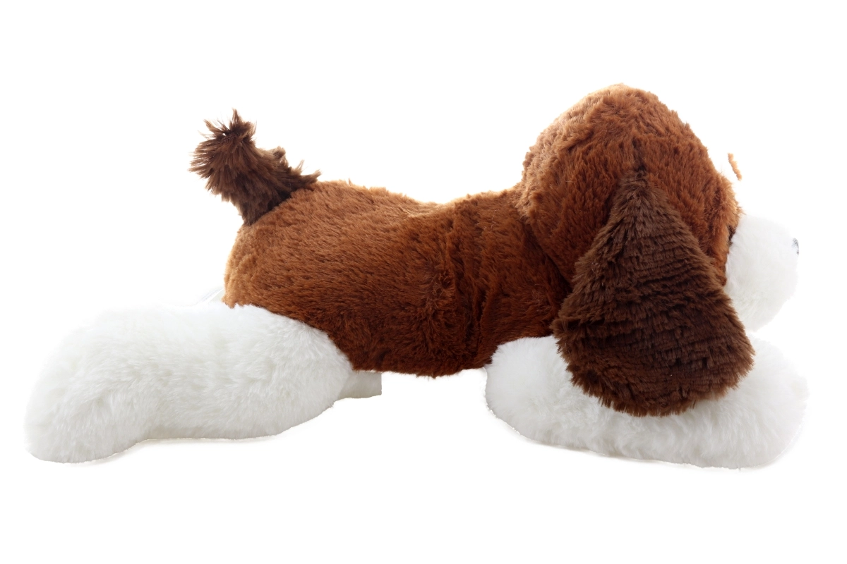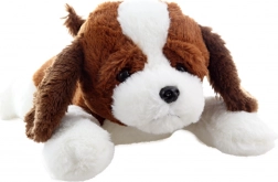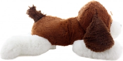 Acest cățel de pluș deschis la culoare, cu urechiușe maro și lăbuțe albe, va cuceri rapid inimile celor mici și mari. Datorită suprafeței catifelate și poziției culcate, este grozav pentru îmbrățișat, relaxare și ca decorațiune în camera copilului. Construcția sigură, fără părți mici detașabile, este potrivită pentru bebeluși.