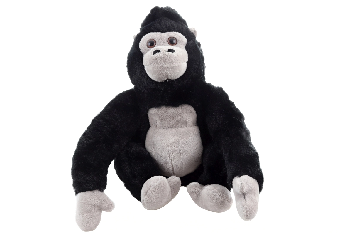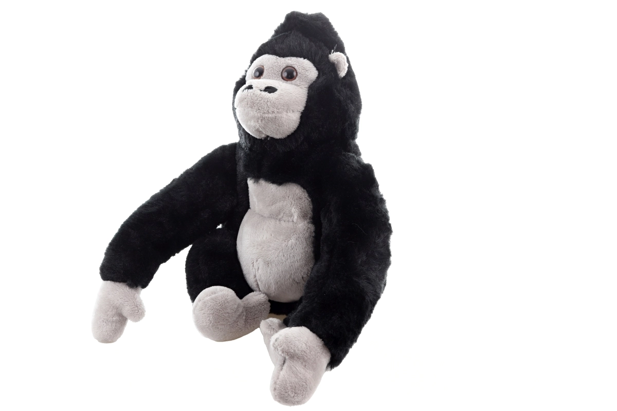 Această gorilă de pluș îmbină siguranța pentru cei mai mici cu un design realist atrăgător. „Blana” neagră moale și detaliile gri deschis ale feței, pieptului și labelor stimulează simțurile și invită la alintat și joacă.
