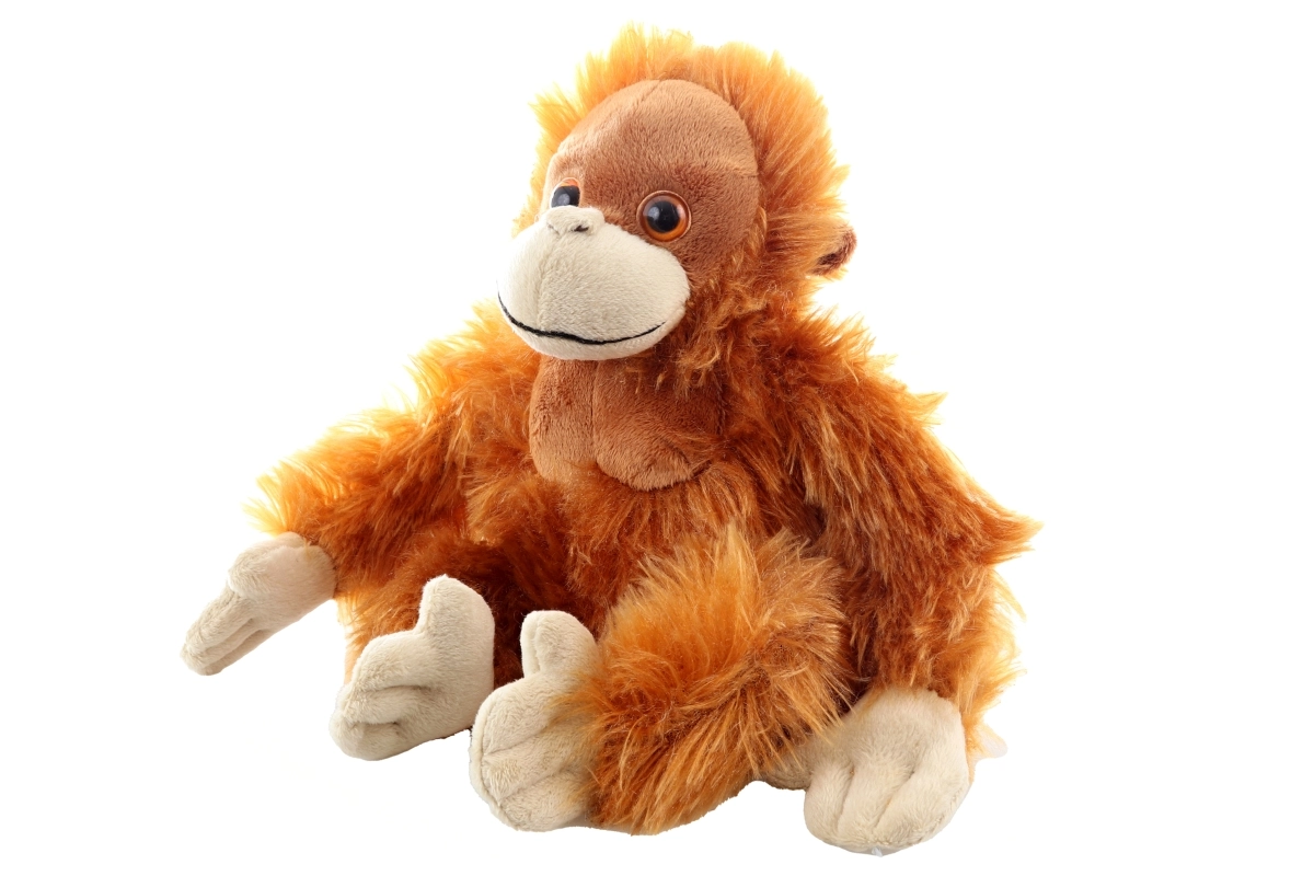Blănița foarte moale și umplutura plăcută fac din orangutan prietenul ideal pentru pătuț și călătorii.
