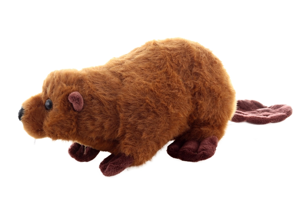 Coada plată caracteristică, dințișorii frontali evidenți și chipul prietenos susțin jocul imaginativ.