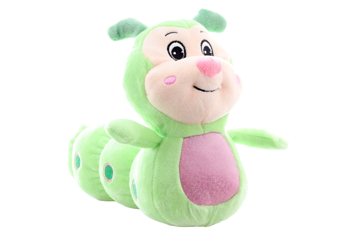 Această omidă foarte moale încântă prin suprafața catifelată și zâmbetul prietenos. Datorită dimensiunilor compacte se ține perfect în mâinile copiilor și devine un companion de nădejde în pătuț, în cărucior și în călătorii. Construcția sigură, fără piese mici detașabile, este potrivită pentru bebeluși și toddleri.