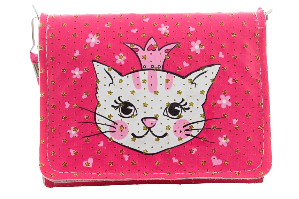 Această geantă ușoară și practică, cu motiv pisicuță, este un accesoriu grozav pentru plimbări, grădiniță și vizite. Datorită dimensiunilor sale compacte, se poartă confortabil și se așază bine pe umărul copilului.