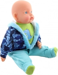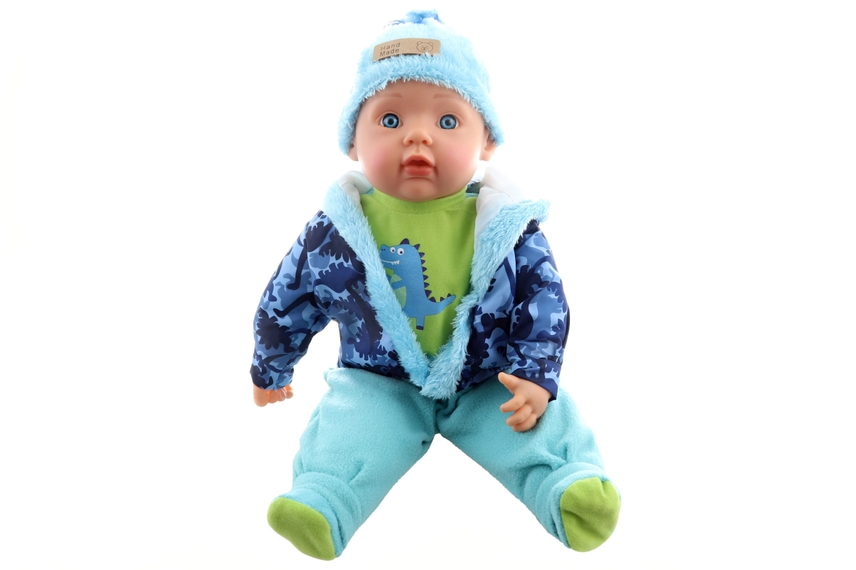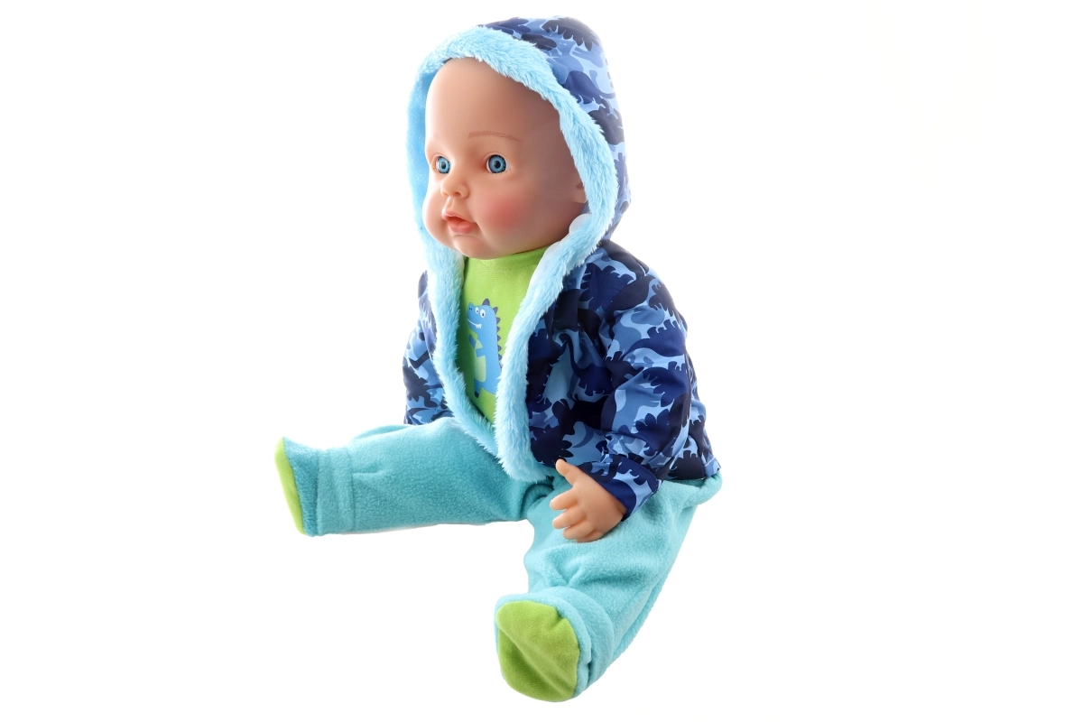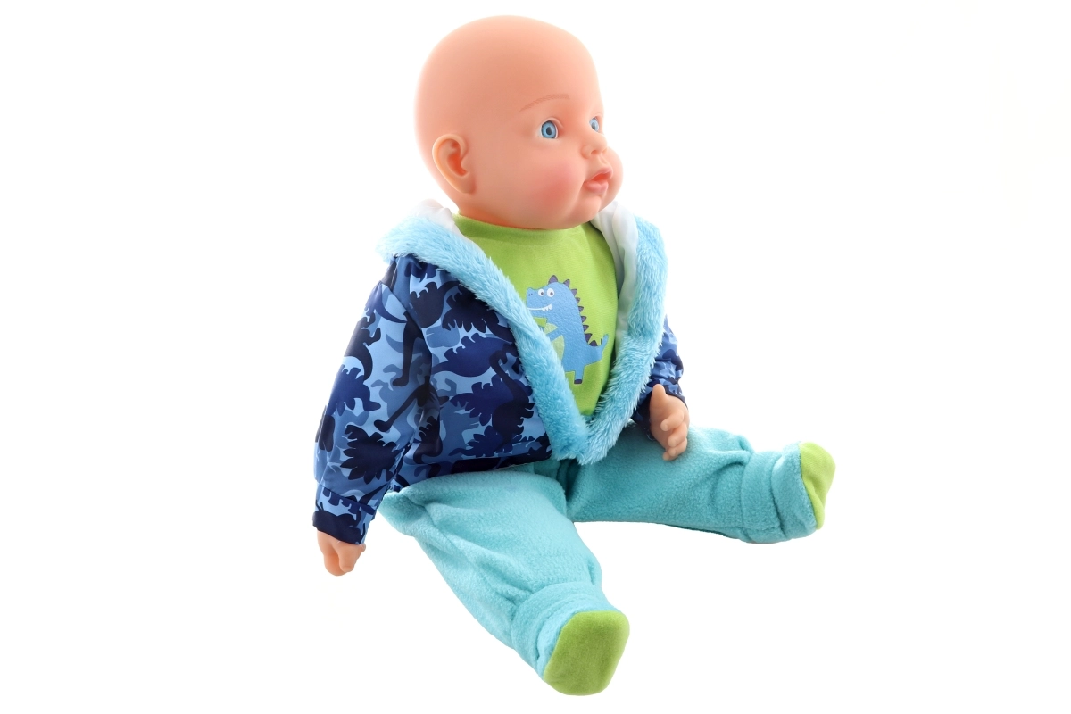 Această păpușă mare bebeluș băiețel este un companion grozav pentru joaca de zi cu zi. Datorită corpului moale se ține și se îmbrățișează plăcut, în timp ce capul și extremitățile din plastic susțin un aspect autentic. Setul stilat de haine cu motiv de dinozaur se poate dezbrăca și îmbrăca ușor – ideal pentru antrenarea motricității fine și jocurile de imaginație.
