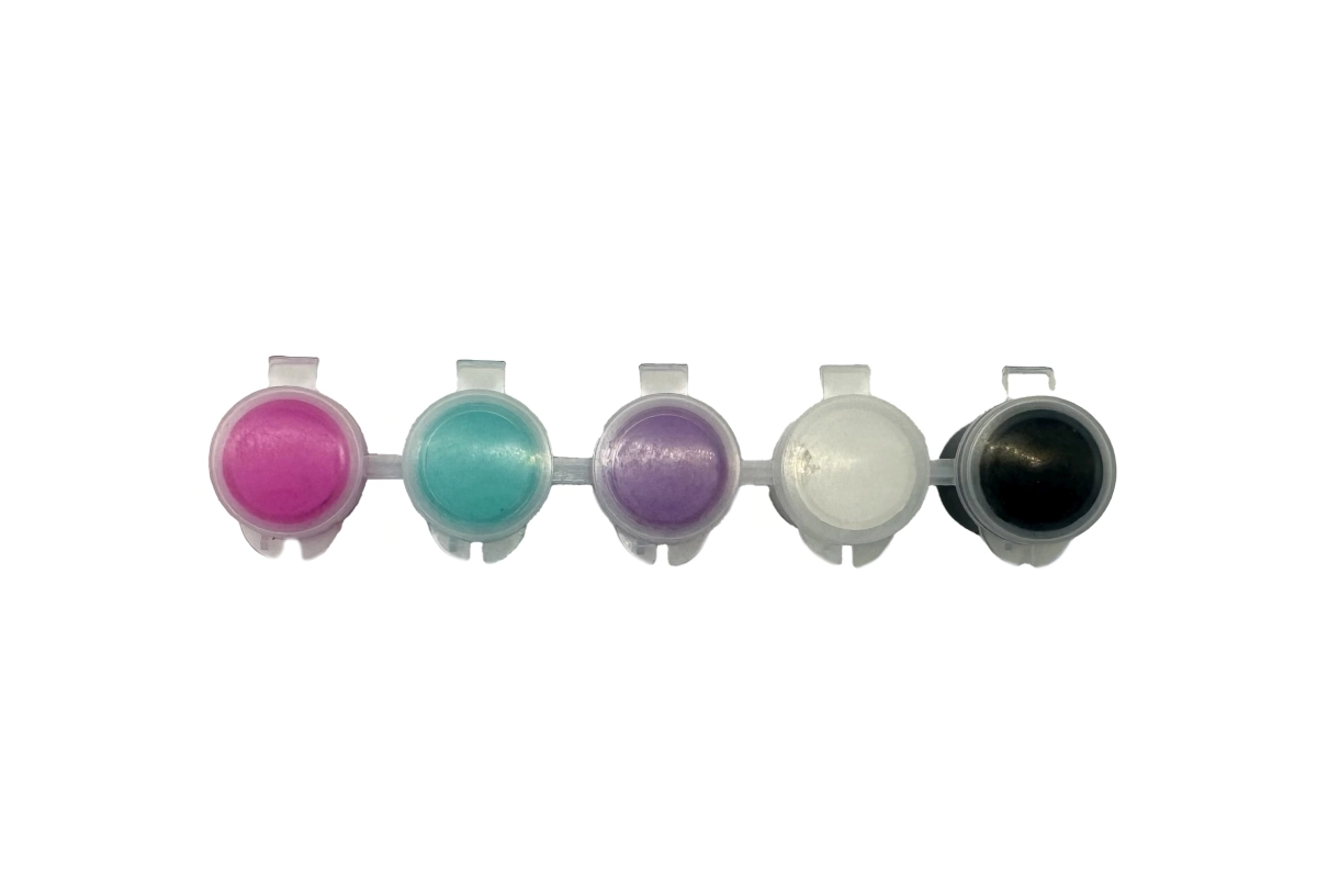Setul include 5 nuanțe pastel în recipiente conectate, cu capace rabatabile. Vopselele nu se răstoarnă și se varsă mai puțin – ideale pentru creațiile copiilor.