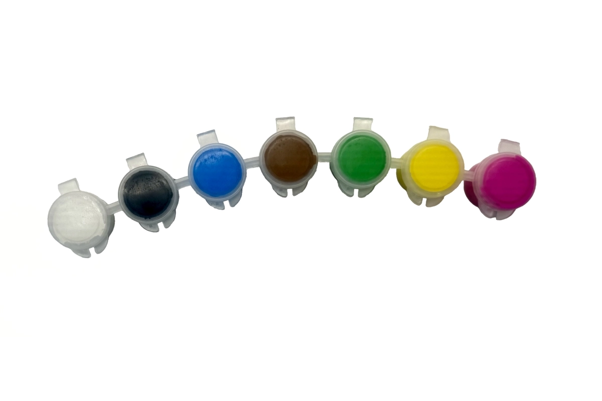 Recipientele conectate, cu capace, păstrează vopselele proaspete și curate mai mult timp. Ideal pentru sesiuni repetate de creație fără mizerie.