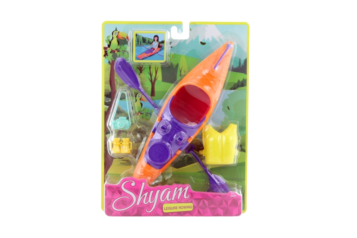 Bucurați-vă de aventuri pe apă cu acest set adorabil – un caiac pentru păpușă cu accesorii grozave. Include vestă de salvare, vâsle, binoclu și aparat foto, toate din plastic rezistent pentru joacă sigură și ușoară. Ideal pentru copii de la 3 ani.