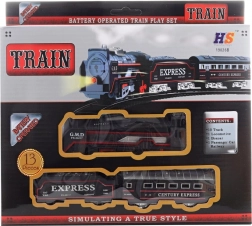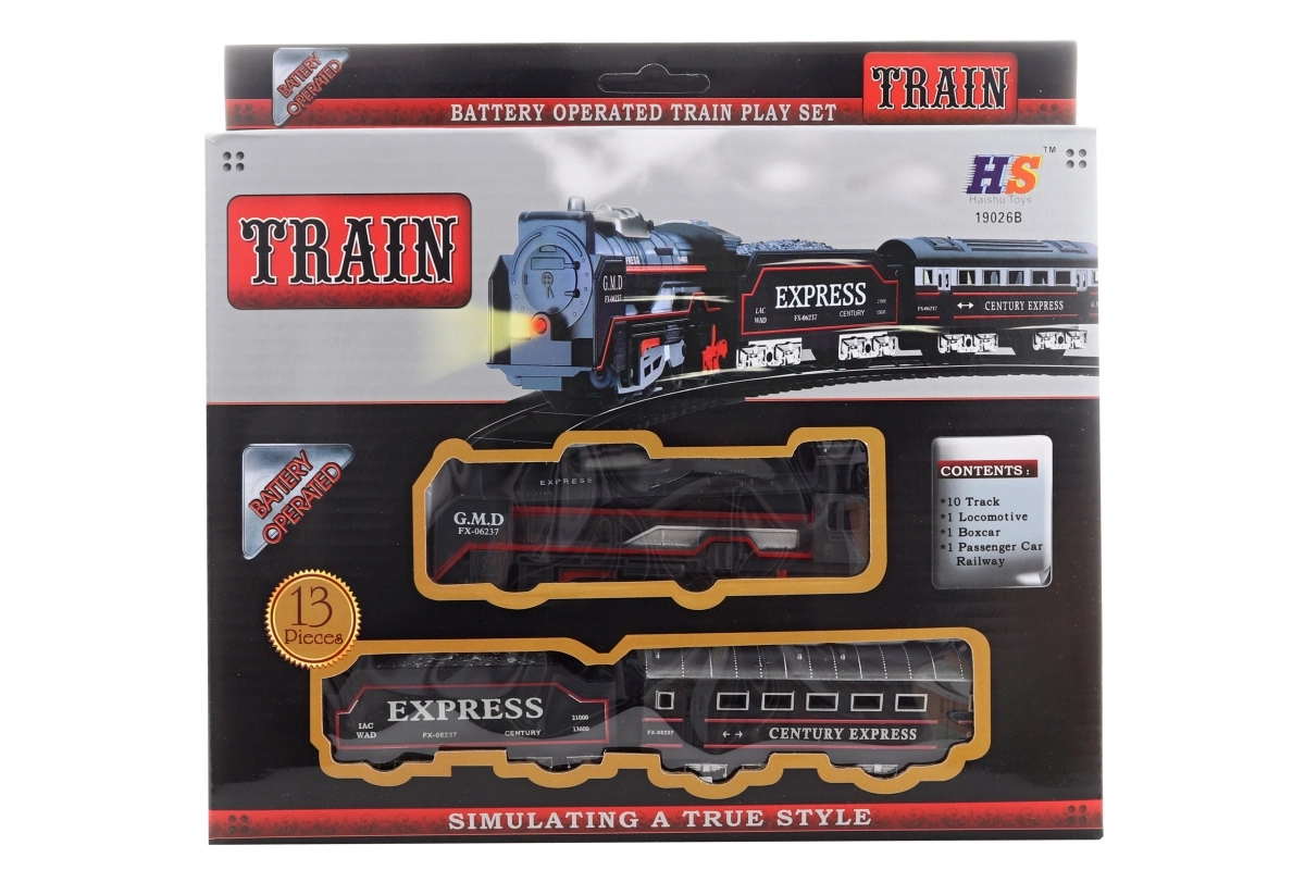 Descoperă distractivul set de tren cu baterii, care îi va încânta pe micii iubitori de trenuri începând de la 3 ani. Setul conține 10 bucăți de șine, locomotivă și 2 vagoane, din plastic rezistent, iar după asamblare formează un circuit cu diametrul de aproximativ 67,5 cm. Locomotiva este alimentată de 2× baterii AA (nu sunt incluse în pachet).