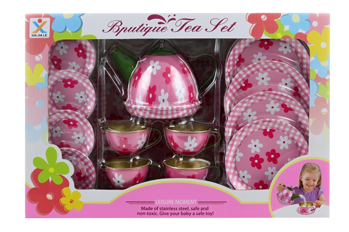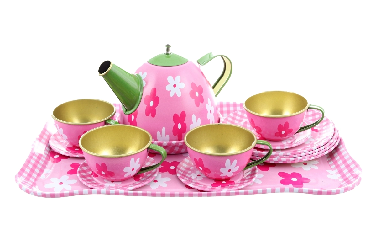 Un set de ceai stilat din tablă, cu un motiv floral delicat, va încânta orice mică gazdă. Conține tot ce este necesar pentru un ceai perfect – de la ceainic până la farfurii și tavă. Setul este ușor, durabil și sigur pentru copiii de la 3 ani. Set complet, design floral și execuție durabilă din tablă pentru ore întregi de distracție și dezvoltarea imaginației copiilor.