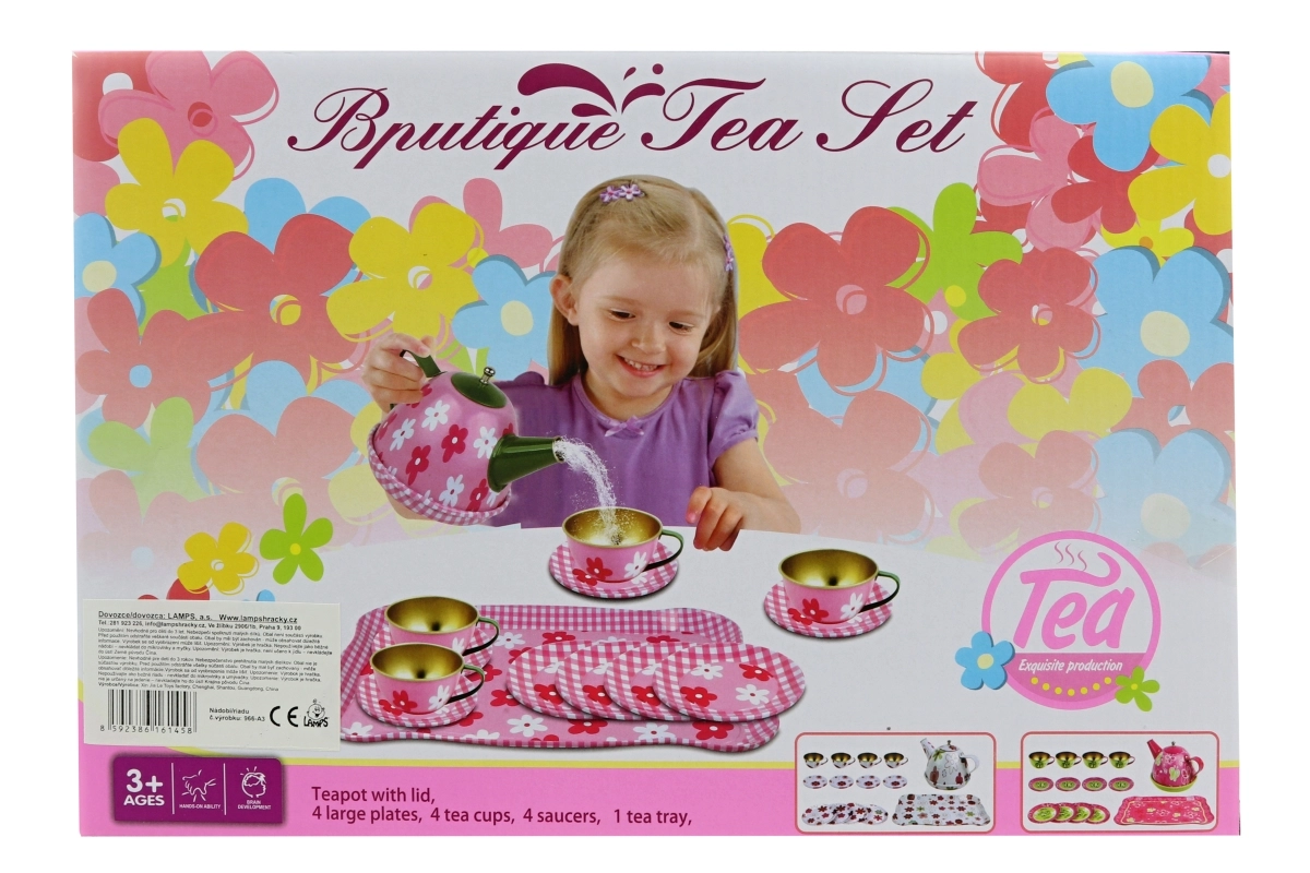 Organizați un ceai fermecător! Acest set de ceai din tablă cu floricele oferă copiilor o experiență autentică de servire a ceaiului, susține jocul de rol, dezvoltarea motricității fine și a abilităților sociale. Datorită tablei rezistente, setul este durabil și totodată ușor pentru o manevrare facilă de către mânuțele mici.
