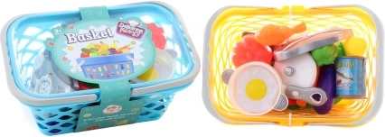 Acest set universal îmbină lumea gătitului și a cumpărăturilor într-unul singur. Copiii se vor bucura de un joc realist cu alimente și veselă, în timp ce coșul cu mânere poate servi și drept geantă de cumpărături. Ideal pentru bucătăriile de jucărie de acasă și pentru joacă împreună cu frații sau prietenii.
