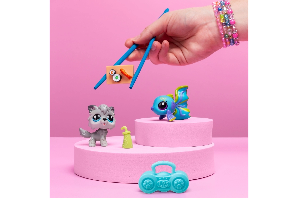 Trei accesorii tematice în pachet stimulează imaginația: de la mâncare și băuturi la recuzită pentru hobby-uri. Se combină ușor cu alte seturi LPS și încurajează joaca inventivă.